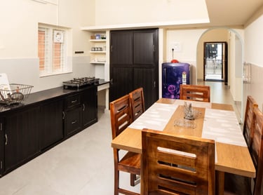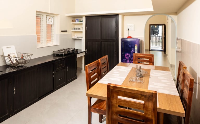 he fully functional kitchen at Chitralayam Homestay is ideal for guests who prefer home-cooked meals. Clean, well-organized, and easy to use, the kitchen is equipped with essential utensils, cookware, and basic appliances to support daily cooking needs. Guests can comfortably prepare simple meals, warm food for children, or make tea and coffee at their convenience. This added flexibility is especially appreciated by families, long-stay guests, and those with specific dietary preferences, making the stay more comfortable and homely.