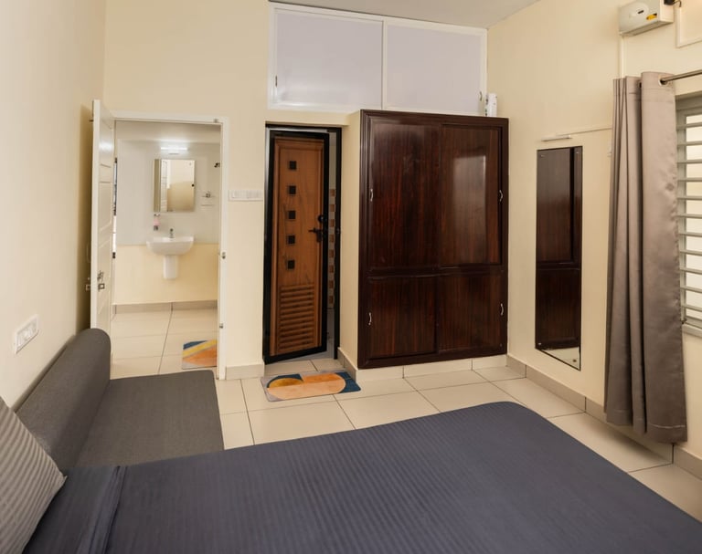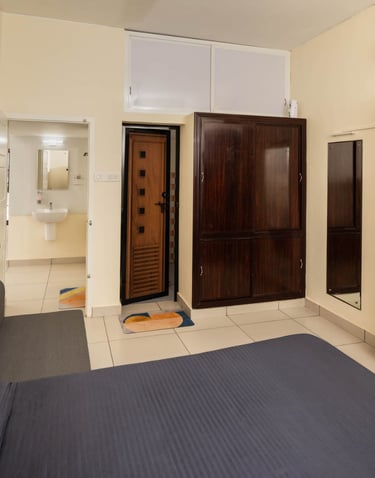 Chitralayam is a two-bedroom independent villa, thoughtfully designed to offer privacy, space, and comfort. The air-conditioned bedrooms, spacious living area, fully functional kitchen, and secure parking facilities make it especially suitable for families and long-stay guests. Every space is carefully maintained to ensure a relaxing and pleasant experience.