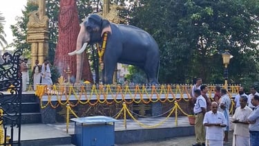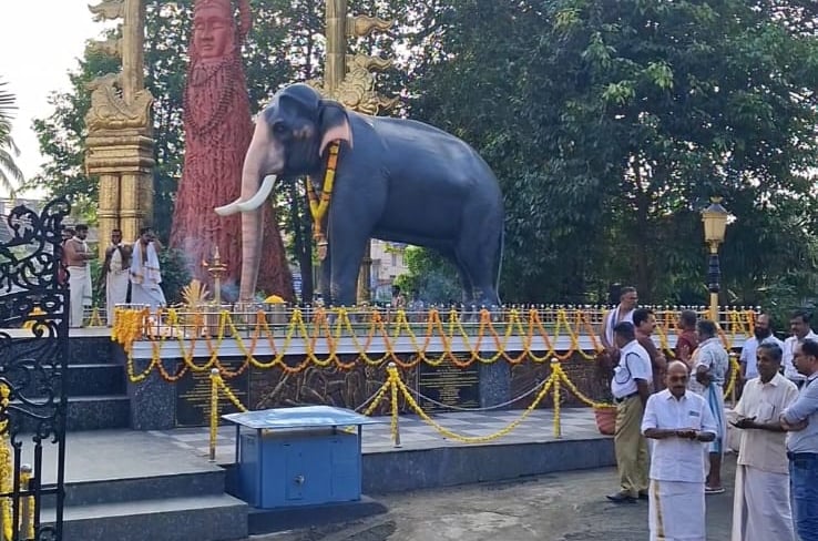 The life-size statue of Guruvayur Kesavan stands as a tribute to the legendary temple elephant of the Guruvayur Sri Krishna Temple. Guruvayur Kesavan is remembered as one of the most revered elephants in Kerala, known for his devotion, discipline, and majestic presence during temple rituals and festivals.